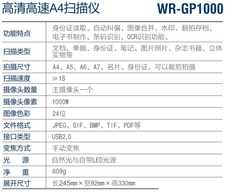 WR-GP1000高清高速A4掃描儀