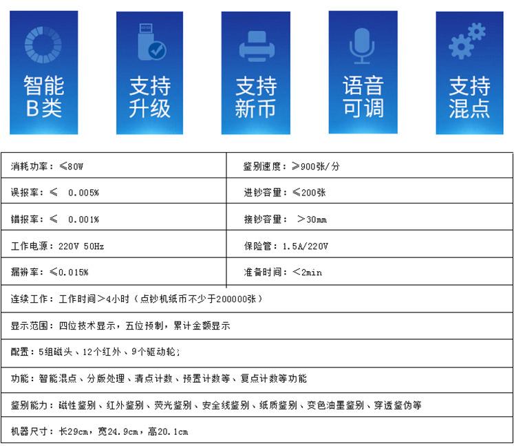 點鈔機類型: 插電式<br>屏幕數量: 雙屏<br>是否支持語音復讀: 支持復讀<br>適用場景: 商用收銀