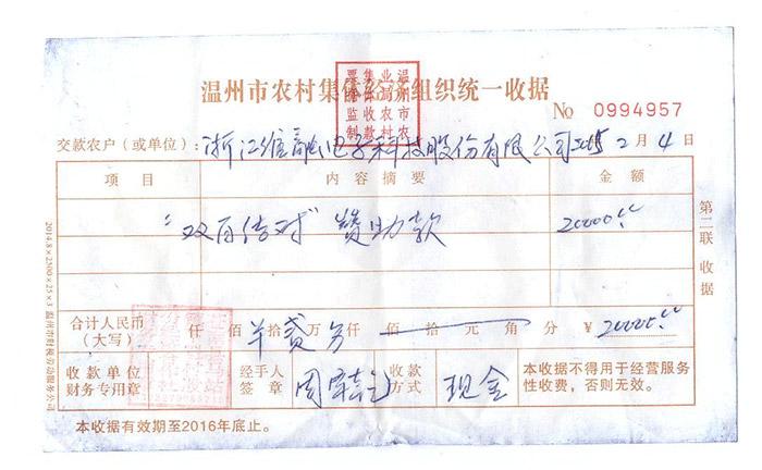 2015.1馬站下魁村雙百結對贊助款