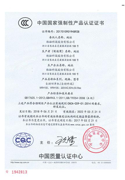 自助回單機(jī)CCC證書