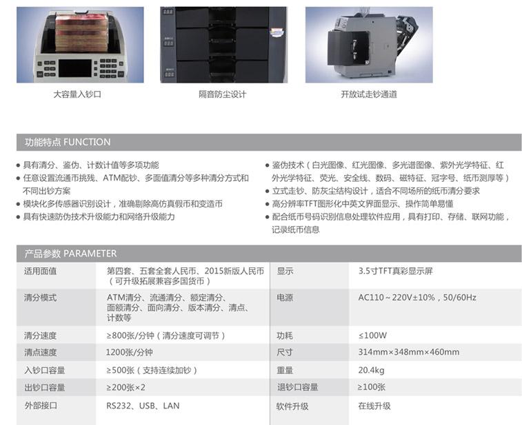 支持多國貨幣點驗功能,支持多語言菜單界面功能,多光譜反射圖像+透射圖像鑒別系統。