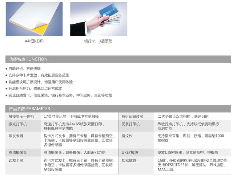 自助發卡終端是滿足客戶在銀行自助開戶發卡方面的業務需求自助設備。